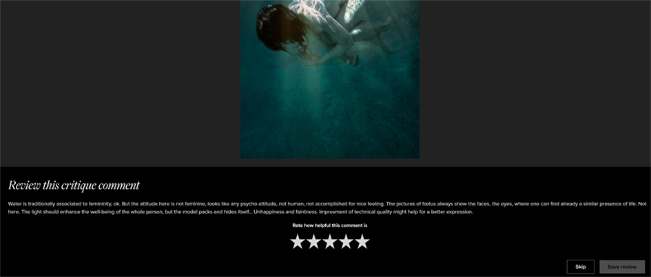 Here, you can either skip the critique or give it a number of stars according to its relevance.