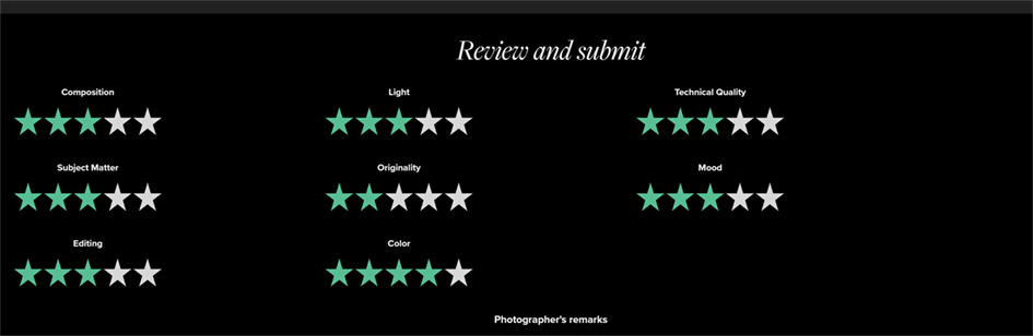 The same rules apply as stated in the previous screenshot: do not write here unless you have specific feedback for the photographer. Repeating, re-using or copy-pasting is not allowed and will be removed automatically.