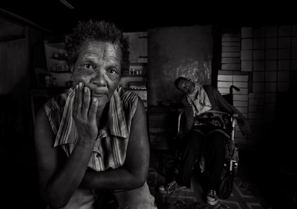 As to environmental considerations, relying on what is available is my modus operandi. I shoot in low light, most commonly without reflectors, often using a high ISO and always using a tripod. Whenever possible, I try to include a few personal belongings — parts of the room or even the outside of the structure people live in —this in an attempt to show the viewer something that is owned or valued by the subject in the frame.